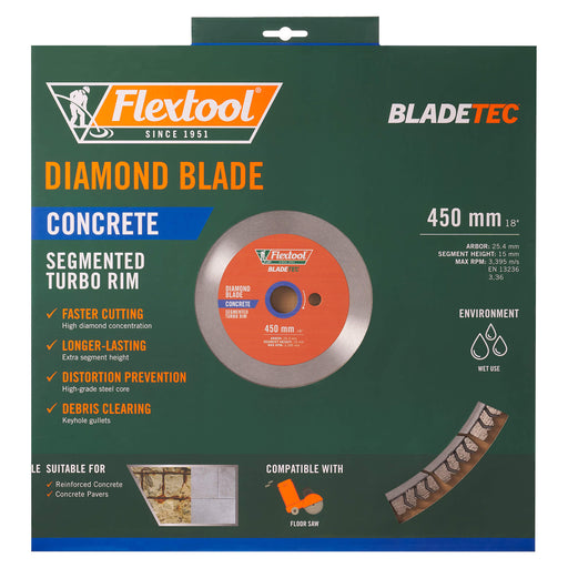 Flextool BladeTec Diamond Blade - Concrete 450 mmThe Flextool BladeTec Concrete Diamond Blade features a unique segmented turbo rim with high diamo...