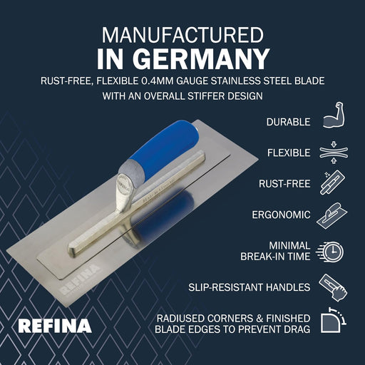 RefinaRefina FINATEX-1 355X120MM Stainless Steel Soft Grip Trowel Features Premium hand-finished blade ensures super flat, smooth results for professiona...
