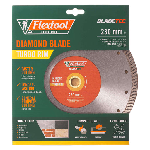 View full detailsFlextool 230/9 Turbo Rim BladeTec Diamond Blade - FT102327-UNIT