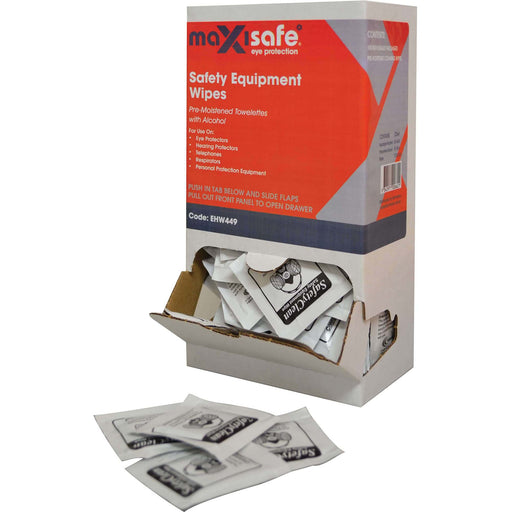 Maxisafe Safety GearMaxisafe Anti-Fog Lens Cleaning Satchets Features: Anti-Fog and non-scratch wipes Micro fibre material - pre-moistened Dispenser of 100 Individual...
