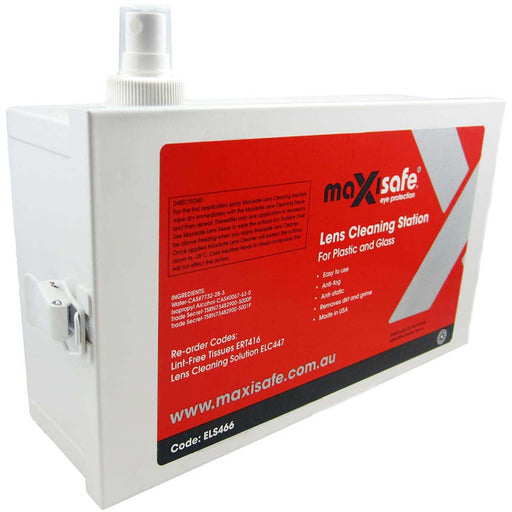 Maxisafe Safety GearMaxisafe Lens Cleaning Station Features: Durable construction for hot and humid environments Refillable with Maxisafe tissues and solution Large M...