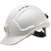 Vented hard hat with Terylene, Sliplock harness, and plastic lamp bracket