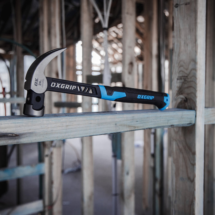 Built with the professional tradesman in mind, the OX Ultrastrike Claw Hammer features an anti-vibration bridge shaft, which eliminates uncomfortable and fatiguing vibrations that often plague extended use. This anti-vibration technology ensures a smoother and more precise striking experience. Designed for comfort and efficiency, the OX Ultrastrike is a lightweight and balanced tool, reducing user fatigue during demanding tasks. Crafted with precision, it is drop forged and hardened, ensuring exceptional durability and longevity, even in the harshest working conditions. The OX grip ergonomic handle offers a secure and comfortable hold, enhancing control and reducing the risk of slippage. Incorporating practicality into its design, this hammer is lanyard-capable, allowing you to keep it within easy reach on the job site. The built-in magnetic nail starter is a game-changer, simplifying nail placement and saving valuable time. Additionally, the OX Ultrastrike boasts a large striking face, further enhancing its efficiency and accuracy. For professionals who demand excellence in their tools, the OX Ultrastrike Claw Hammer is a standout choice. Whether you're a carpenter, builder, or tradesperson in any field, this hammer delivers on both performance and comfort, making it an invaluable addition to your toolkit. Trust OX for quality and innovation with the Ultrastrike Claw Hammer.
