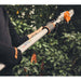 A robust branch hook cast onto the compact cutting head makes it easier to grasp and remove loose cuttings. The sprocket cover is equipped with a direction guide for precise positioning and lateral chip ejection. Thanks to the ergonomically optimised control handle with LED display, you have all the controls of the STIHL HTA 160 conveniently at hand. The standard STIHL protective foot protects the motor housing of the pole pruner from contact with the ground. The easy-to-clean air filter with metal mesh supports optimal motor cooling and as such a long service life for your STIHL HTA 160. The optionally available STIHL RTS harness allows you to take the strain off your back while maintaining a high level of freedom of movement for longer periods of work.